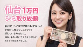 東北地方仙台のシミ取り放題は1万円である?条件別おすすめ9選 仙台で「シミ取り放題1万円」があるのかを条件つきで整理し、1万円前後で始めやすい施術から放題・定額・複数個プランまでおすすめ9院を比較。料金は公式ページをもとに随時更新しています。 2023.09.16東北地方