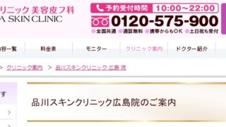 中国地方【品川スキンクリニック広島院】※悪い口コミ~良い評判まで解説! 品川スキンクリニック・品川美容外科の広島院(広島市中区紙屋町)を紹介します。悪い口コミ~良い評判まで調べました。 2023.10.13中国地方